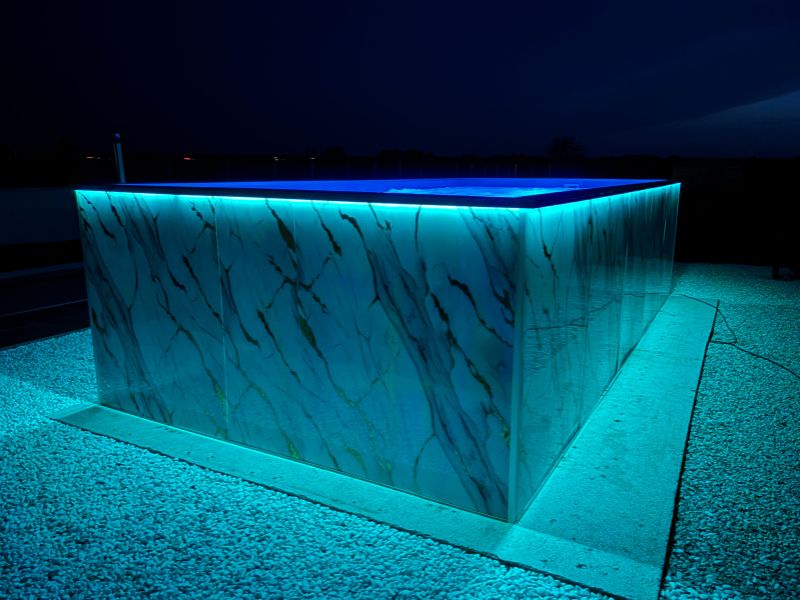 Unsere Pools benötigen kein Betonfundament und werden standardmäßig mit einem passgenauen Stahlrahmen und 6 cm XPS-Isolierung für optimale Wärmedämmung geliefert. Eine Investition in die Zukunft.